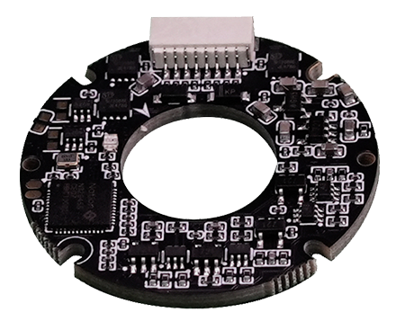 紧凑型分体式时栅角度编码器由独立的转子和定子组成,可分别安装于需要进行角度测量运动部件的转动部分和固定部分。紧凑型分体式时栅角度编码器的转子和定子均为中空扁平结构,采用成熟的PCB工艺制作。传感单元与测量电路进行高度集成,在保障测量性能的条件下,将编码器空间尺寸和重量缩减到极限。可根据用户待测部件的结构形式和尺寸定制编码器,为用户在极限的空间条件下提供有效的角度测量解决方案。